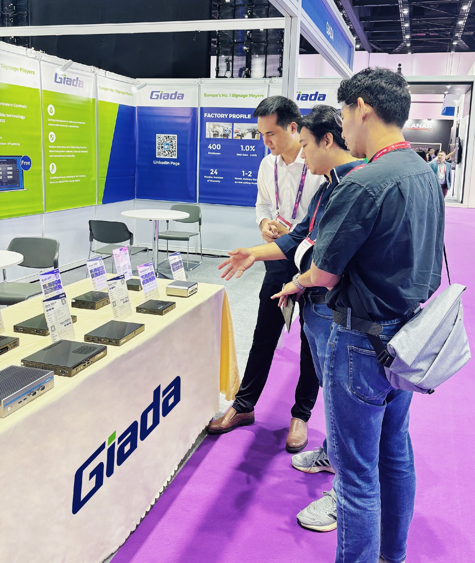 除此之外,Giada南宫科技展示一系列数字标牌播放器、户外嵌入式整机、OPS/SDM及嵌入式主板等明星产品,并带来一系列量身定制的解决方案,以满足东南亚地区的具体需求。